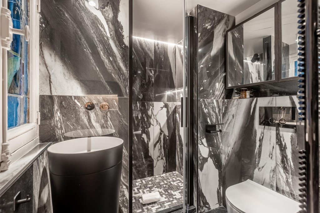Spacieux duplex de 110m2 entièrement rénové avec des matériaux haut de gamme sur l’Ile Saint Louis – 3 chambres et 3 salles de bains.