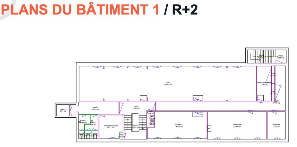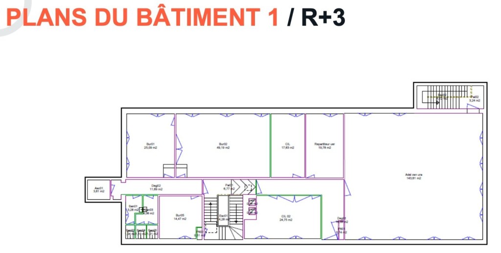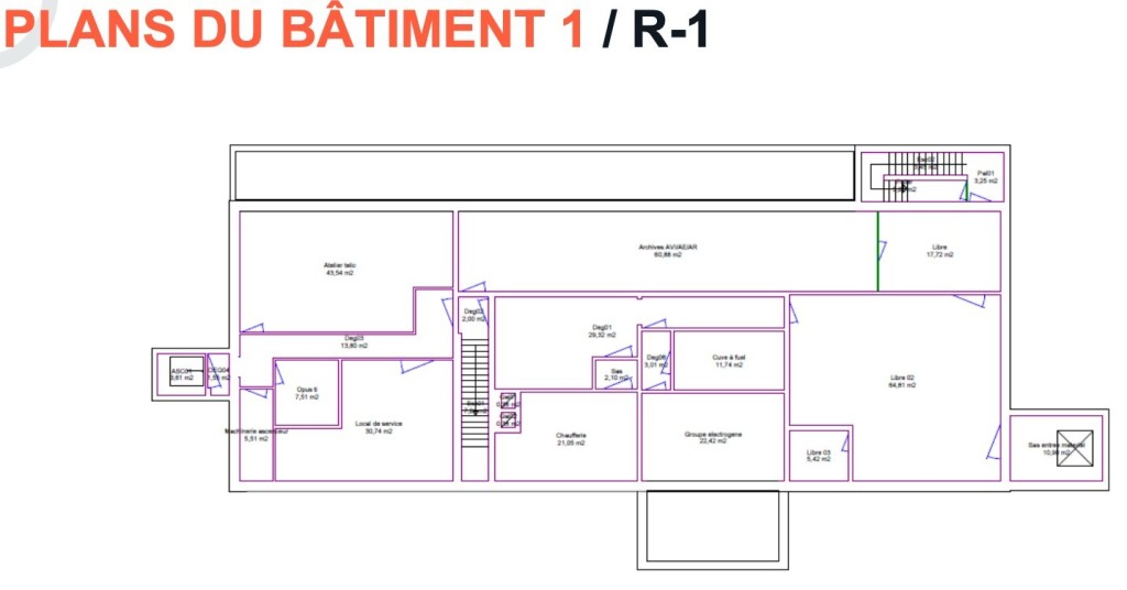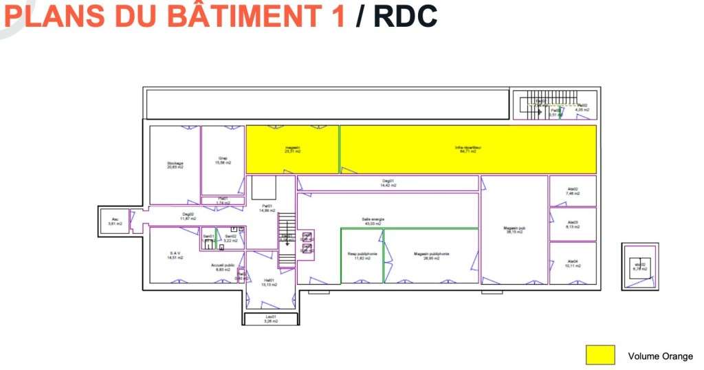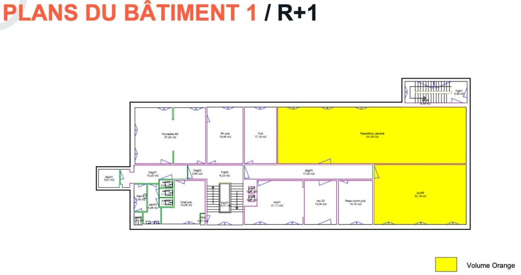 L’immeuble dispose d’une zone appartenant à Orange sous la forme de micro-volumes d’une superficie de 158 m2 non comptabilisé dans la surface.