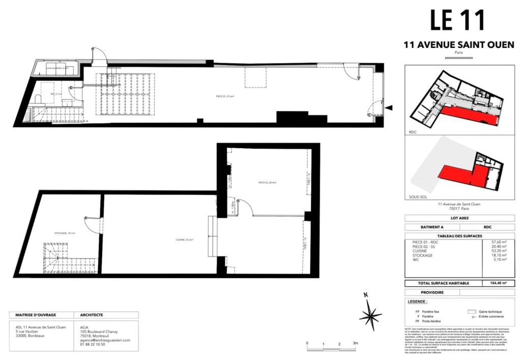 Un local commercial (lot A02) d’une surface de 154,4 m2 situé au 11 avenue de Saint-Ouen dans le 17ème arrondissement de Paris. Il se compose d’un RDC d’une surface de 62,7 m2 et d’un sous-sol de 91,7 m2. L’actif est idéal afin d’ouvrir un restaurant. Il dispose d’une extraction.