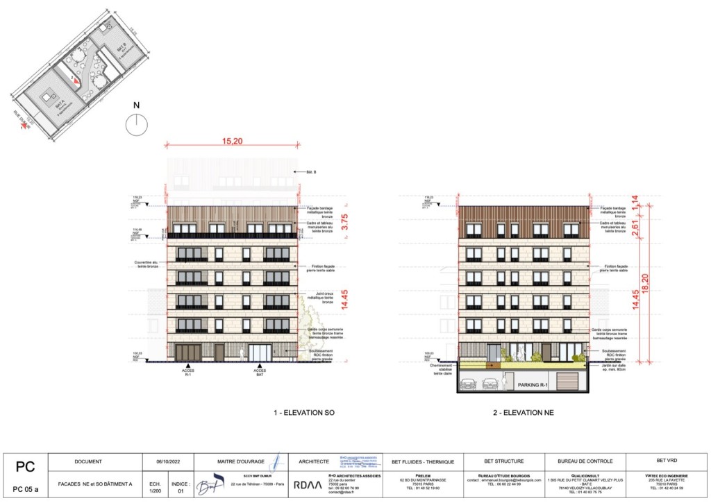 Projet de construction : 18 logements dont 7 logements et un local commercial créés – Mairie d’Asnières – 379m2 – 2,8 M € FAI
