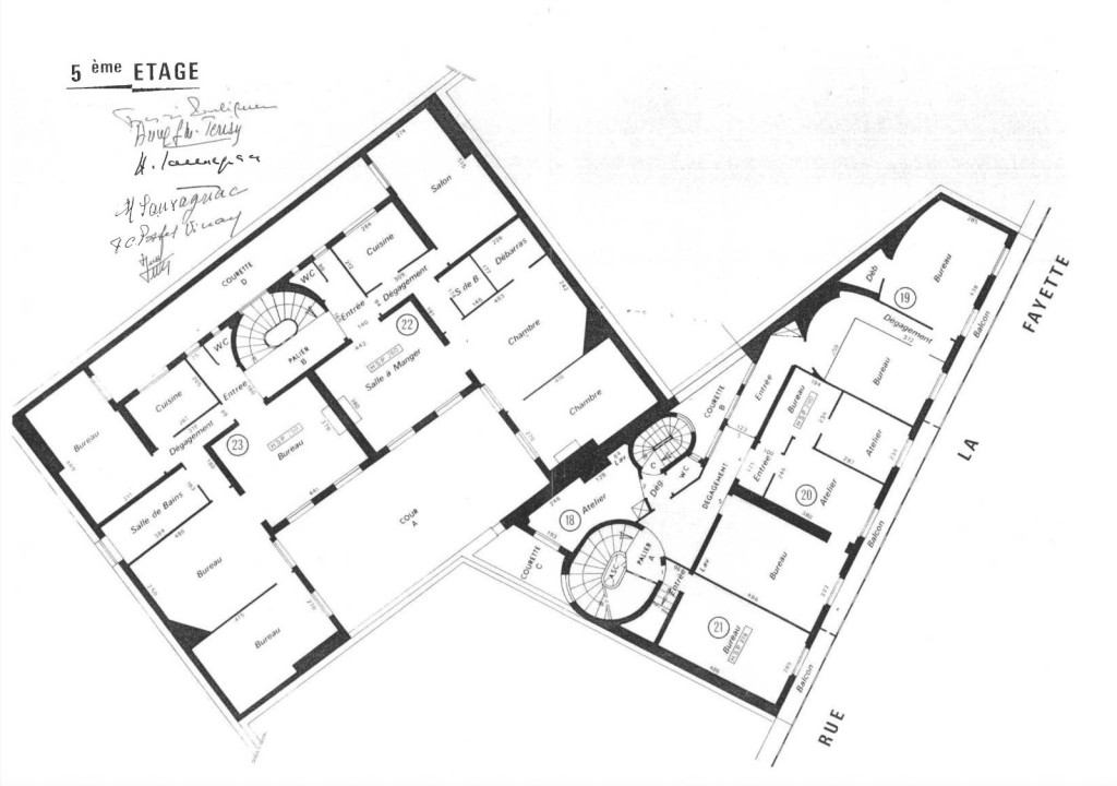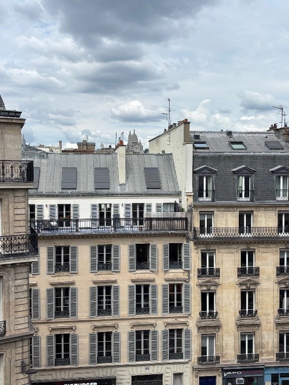 Les bureaux, situés à un étage élevé, sont accessibles par l’ascenseur principal du hall de l’immeuble et bénéficient d’un grand balcon offrant une vue magnifique sur le Sacré-Cœur et les monuments de Paris.